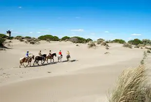 Découvrez la ville fortifiée d’Aigues-Mortes, ou partez à l’aventure lors de balades à cheval pour admirer les chevaux blancs, taureaux et flamants roses typiques de la région.